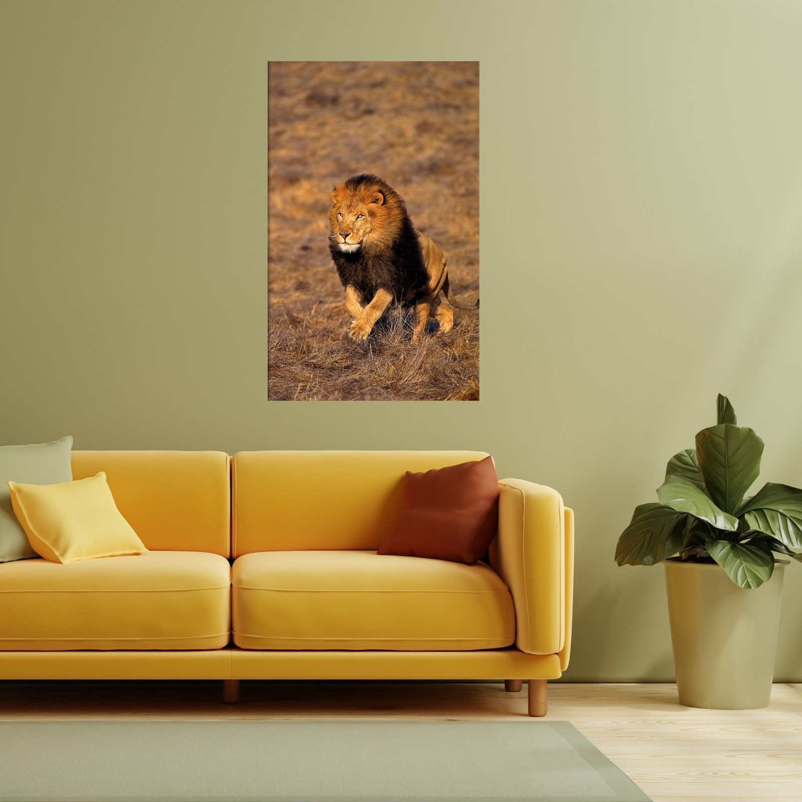 Obraz na płótnie Biegnący Lew na Sawannie Przyroda 80x120 cm