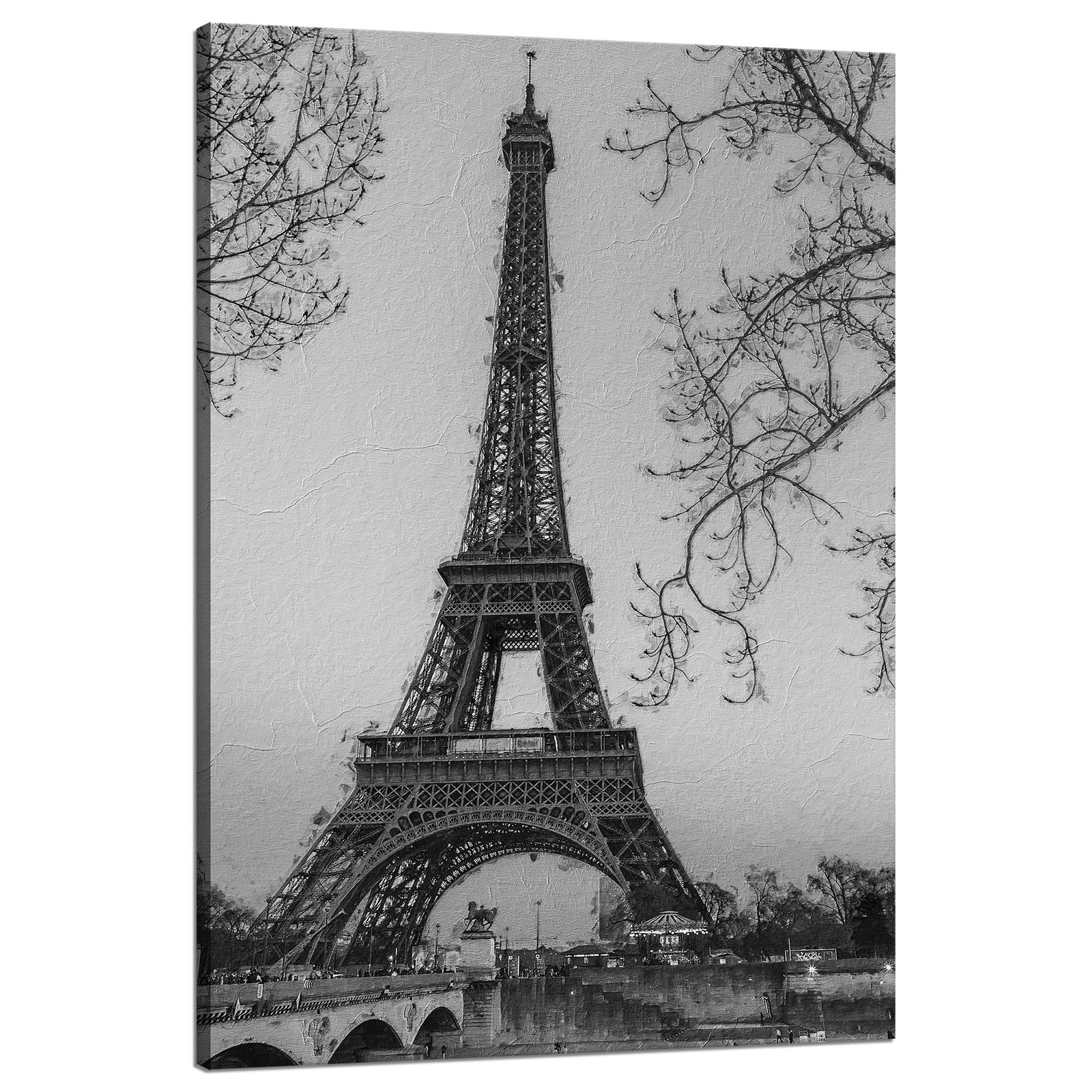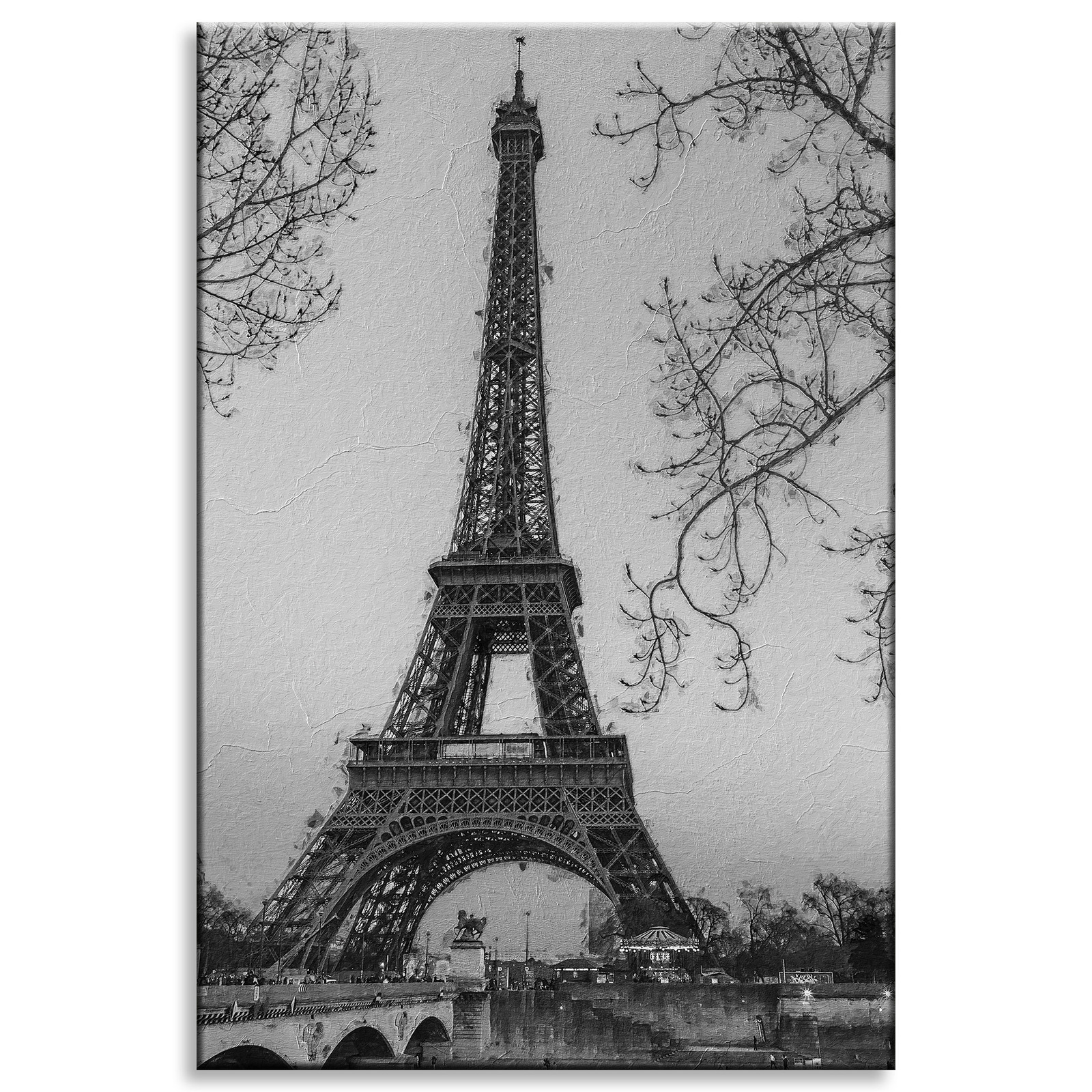 Obraz na płótnie Czarno-biała Wieża Eiffla Francja Retro 80x120 cm