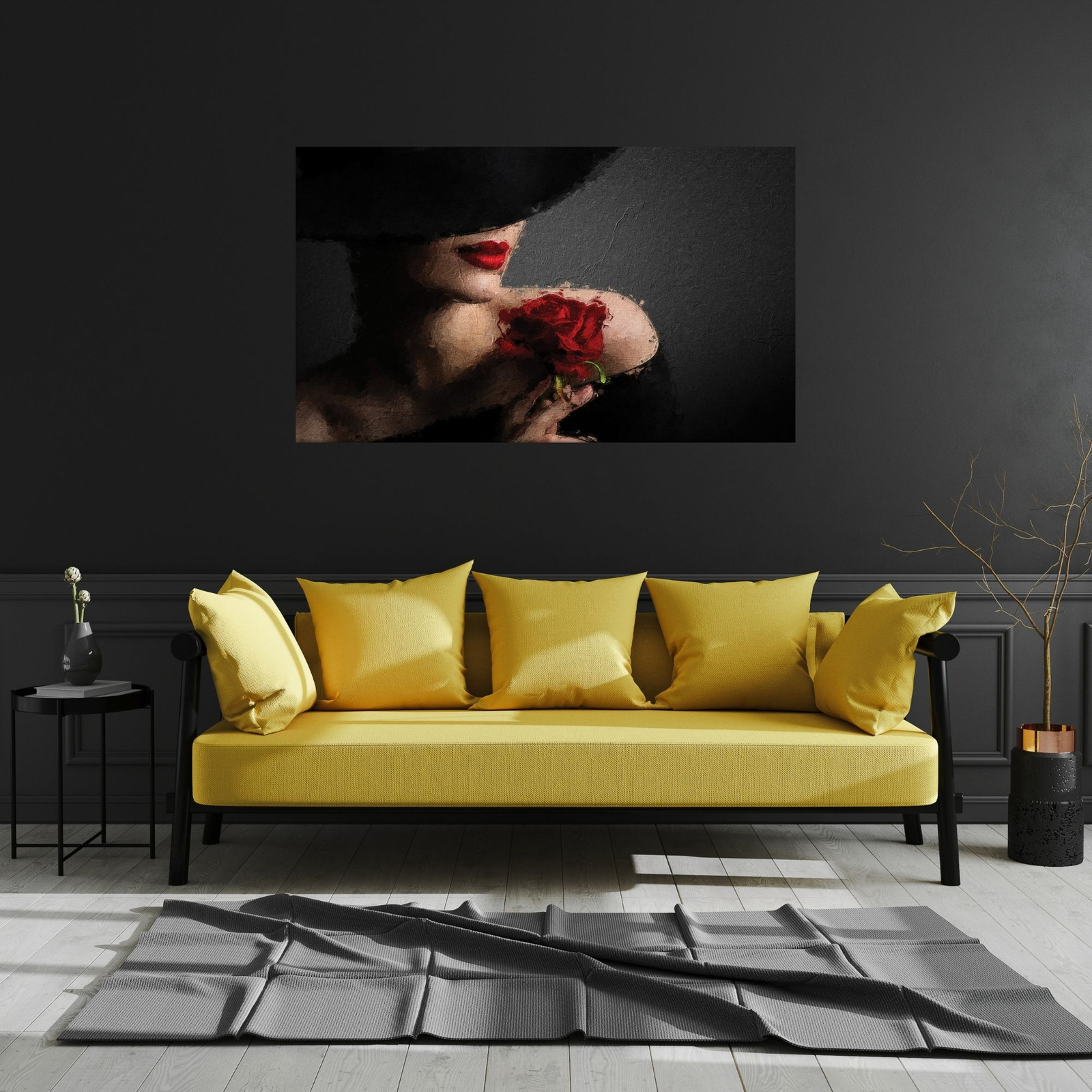 Obraz na płótnie Kobieta z Czerwoną Różą Czerwone Usta Elegancja 100x80 cm