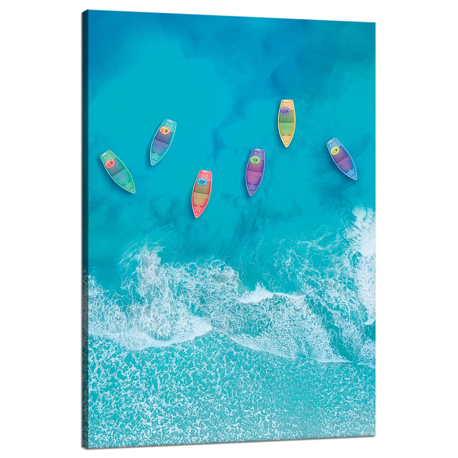 Obraz na płótnie Łódki na Wodzie Oceanie Błękit 80x120 cm