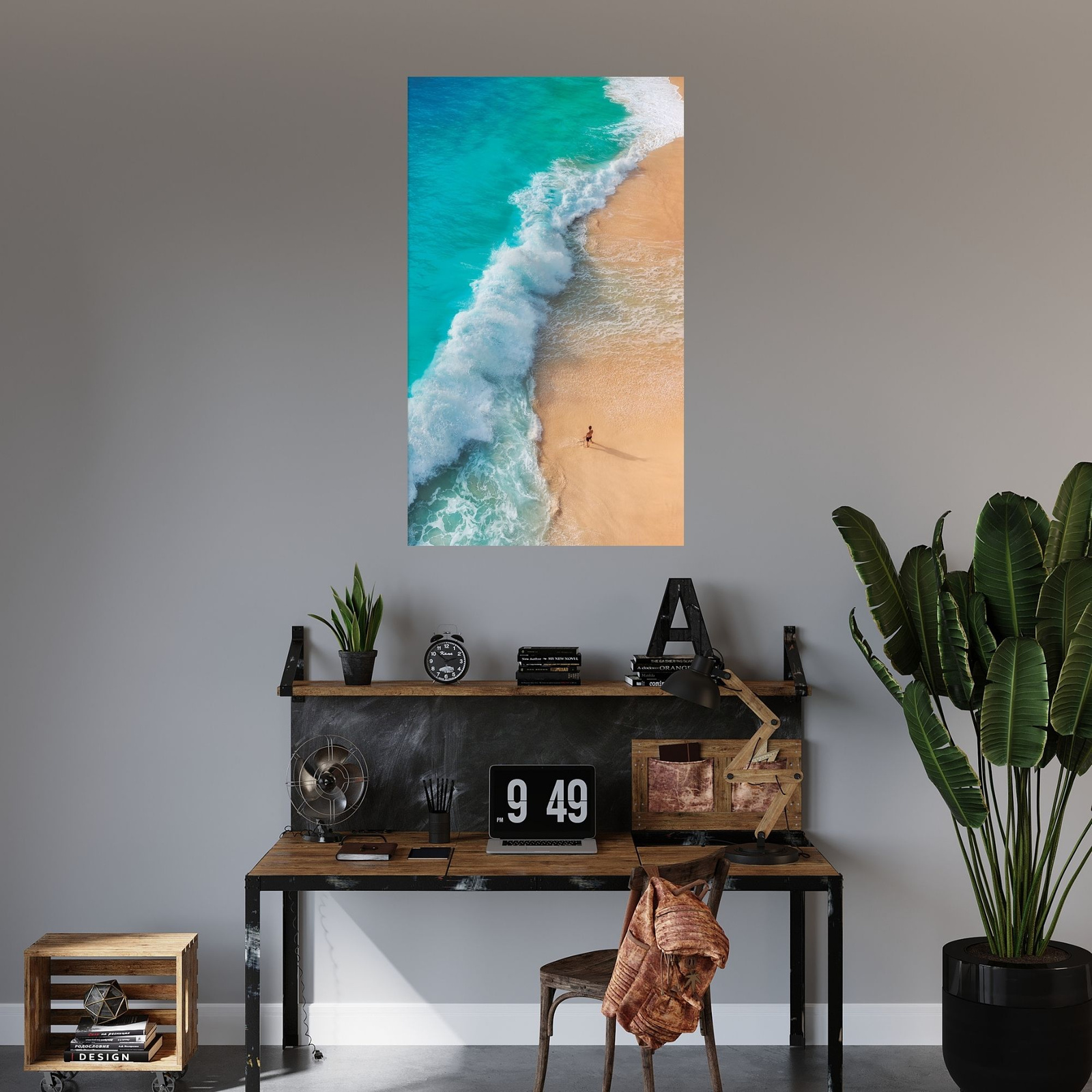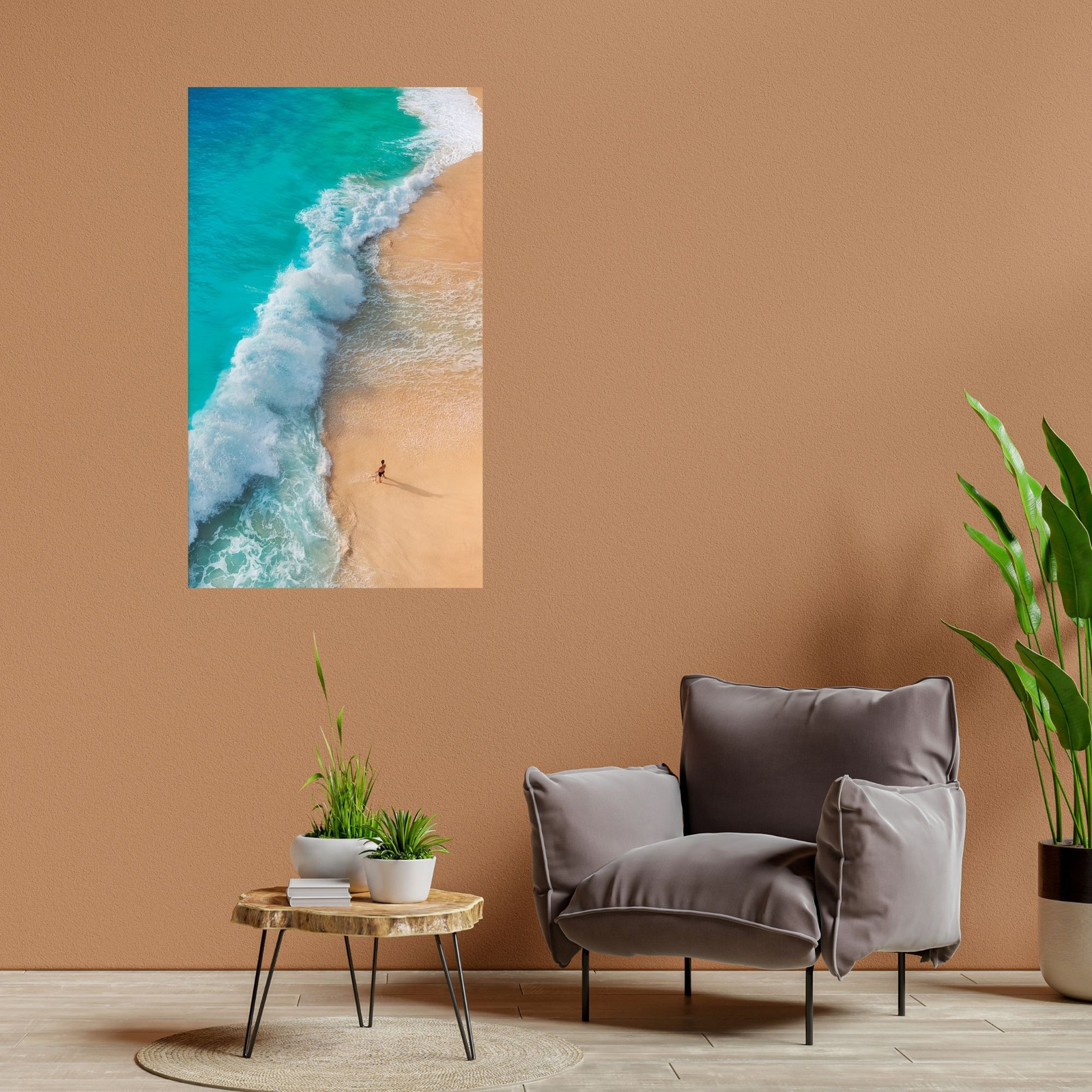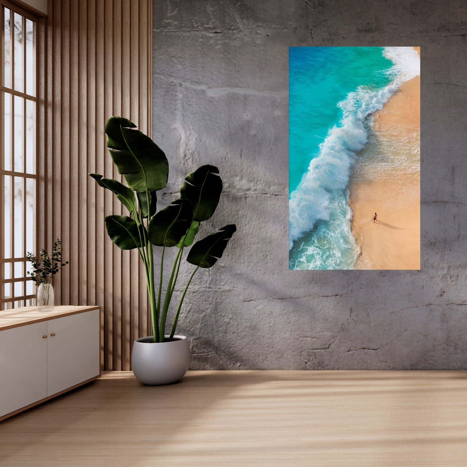 Obraz na płótnie Mężczyzna na Plaży Fale Woda Słońce 80x120 cm