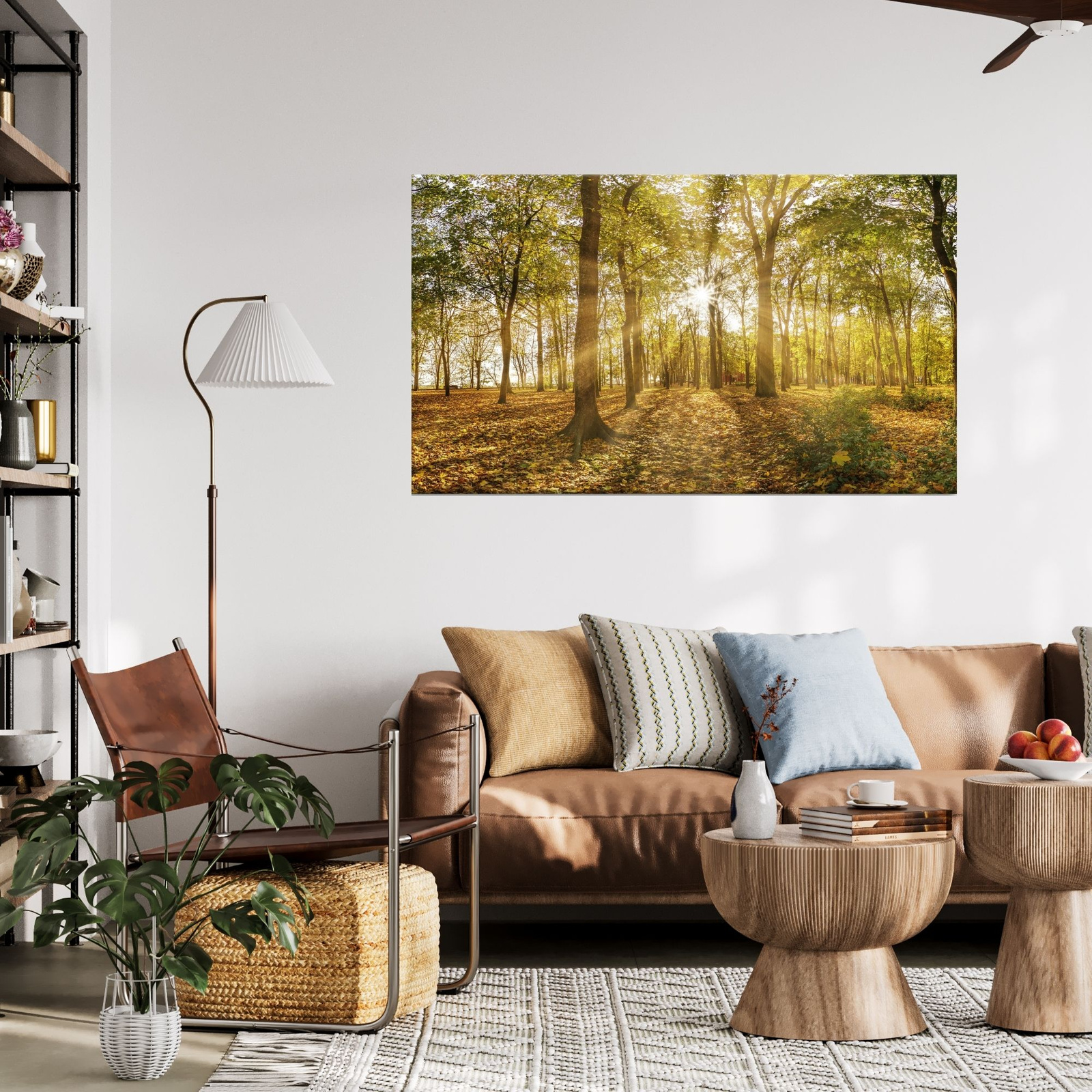 Obraz na płótnie Słońce między Drzewami w Lesie 70x50 cm