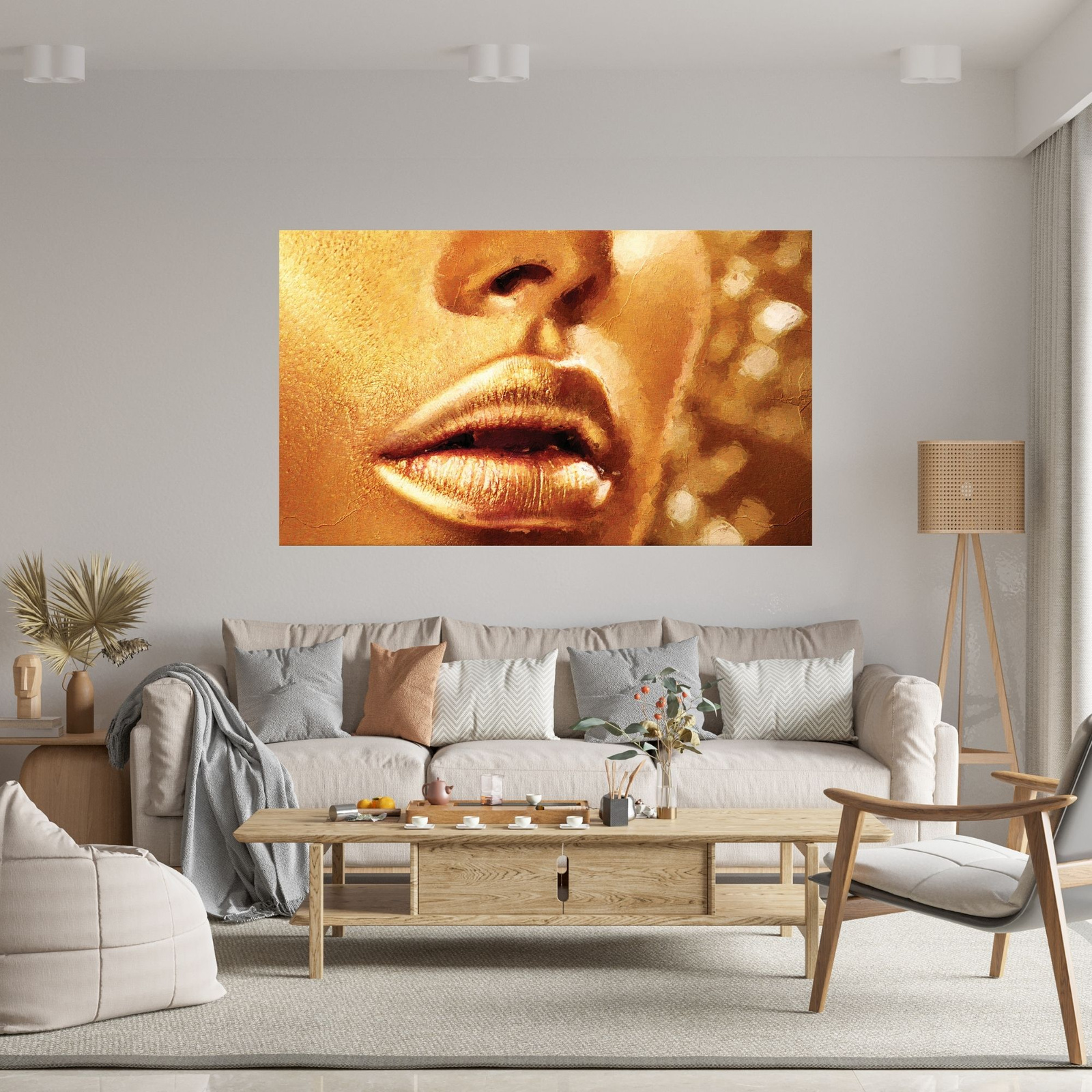 Obraz na płótnie Złota Twarz i Usta Sztuka Styl 100x80 cm
